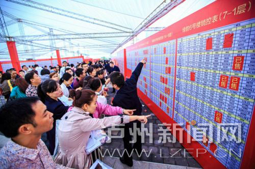 早上8時許,“綠韻”準業主們陸續來到現場,領取號牌、就坐,等待搖號入場選房。9時許,在萬眾期待中搖號開始,現場在公證人員的見證下,每組搖出20個號依次進入選房區選房?!斑@套,這套……”選房區內場面異常火爆,準業主們爭先恐后指出自己早早相中的房源,唯恐落后一步就被別人搶走。