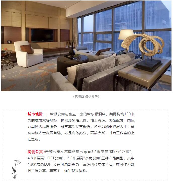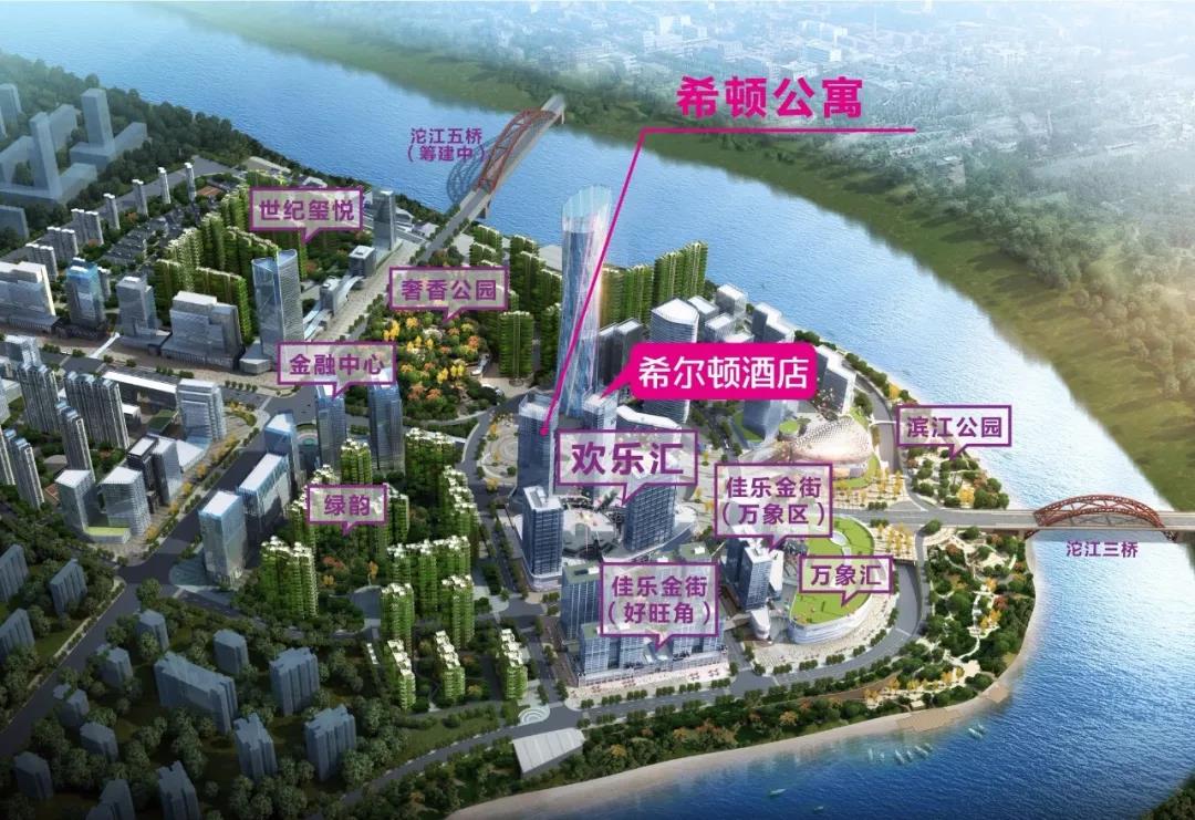 希頓公寓位于佳樂世紀城·歡樂匯,毗鄰中心廣場、金融中心、綠韻等,與希爾頓酒店同步設計建設,共同構筑150米高的雙塔城市地標。
