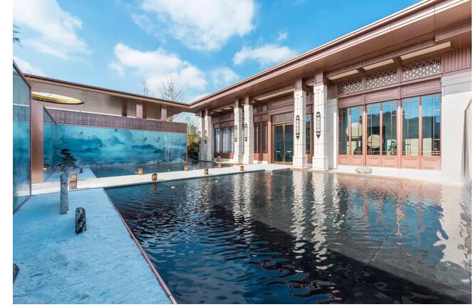 以“東方人居”為核,匠心為法,融匯東方山水哲學,以自然詩意的文化傳承,取中式園林高低曲折之趣,間以池沼花木。