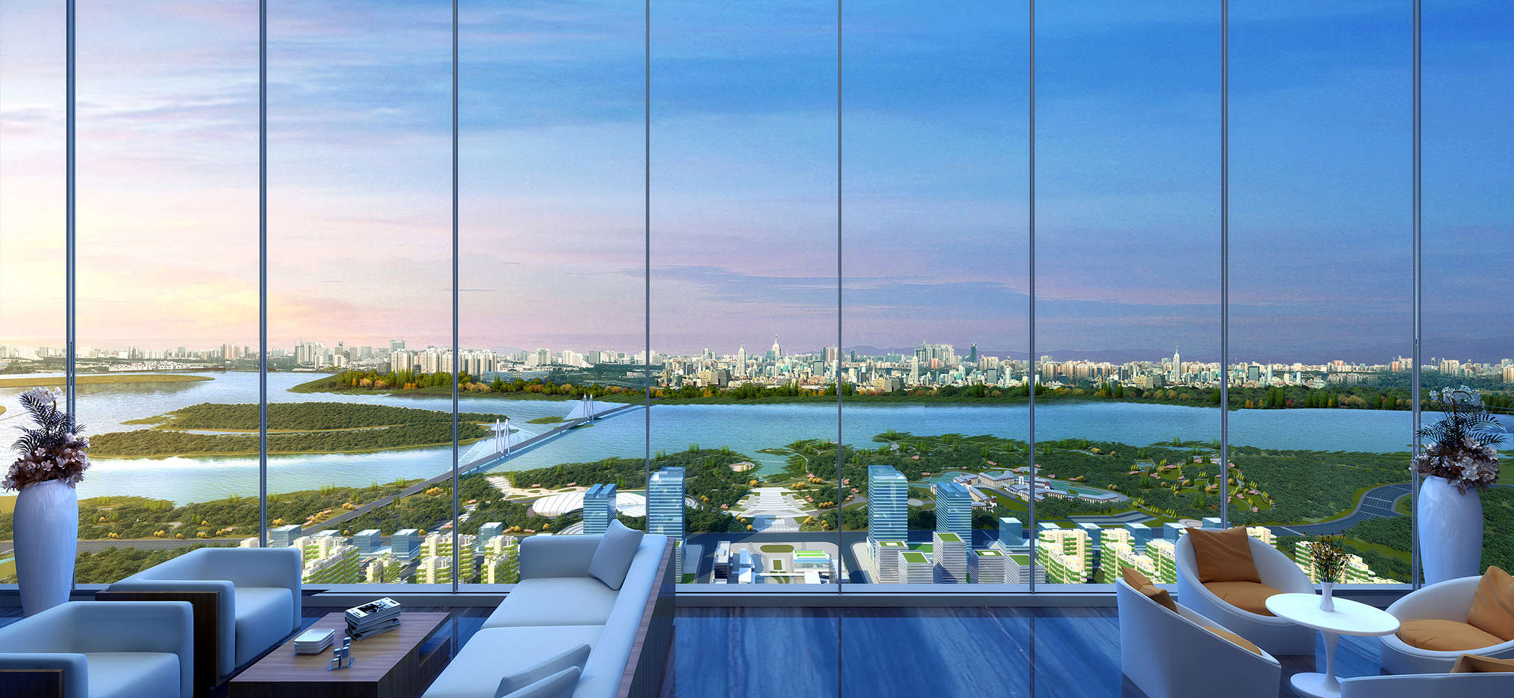 中軸兩端濱江、濱湖觀景平臺,超高層建筑360°觀景陽臺,構成了 “城市陽臺”系統,置身其間,一副自然與城市交融的山水畫卷賞心悅目。